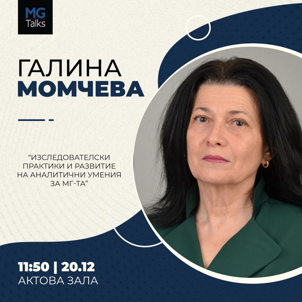 Очакваме Ви на лекцията на Галина Момчева “Изследователски практики и развитие на аналитични умения за МГ-та” на 20.12 от 11:50 до 12:30 ч. НА ЖИВО 🔴 в МГ.