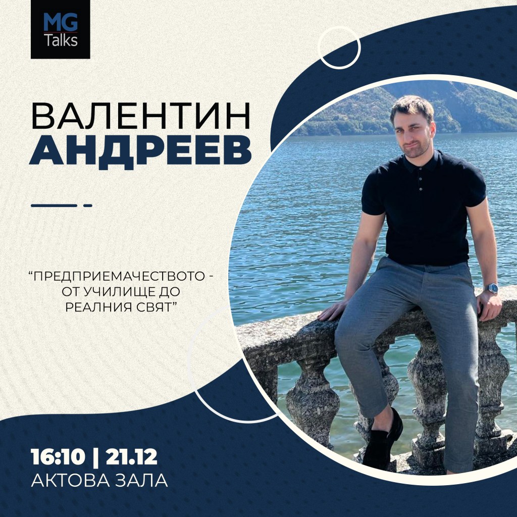 Очакваме Ви на лекцията на Валентин Андреев “Предприемачеството – от училище до реалния свят” на 21.12 от 16:10 до 16:50 ч. НА ЖИВО 🔴 в МГ.