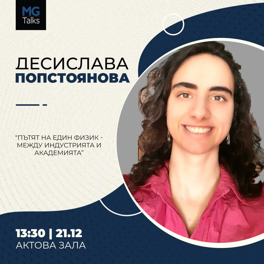 Очакваме Ви на лекцията на Десислава Попстоянова “Пътят на един физик – между индустрията и академията” на 21.12 от 13:30 до 14:10 ч. НА ЖИВО 🔴 в МГ.